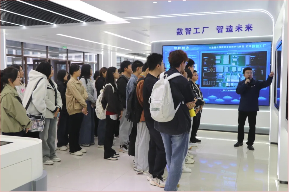 接下来,师生们来到生产车间,生产部经理孙志民向大家介绍了生产线的基本布局、工作流程以及安全生产的重要性。让学生们对生产企业的生产流程有了直观地认知和体验。